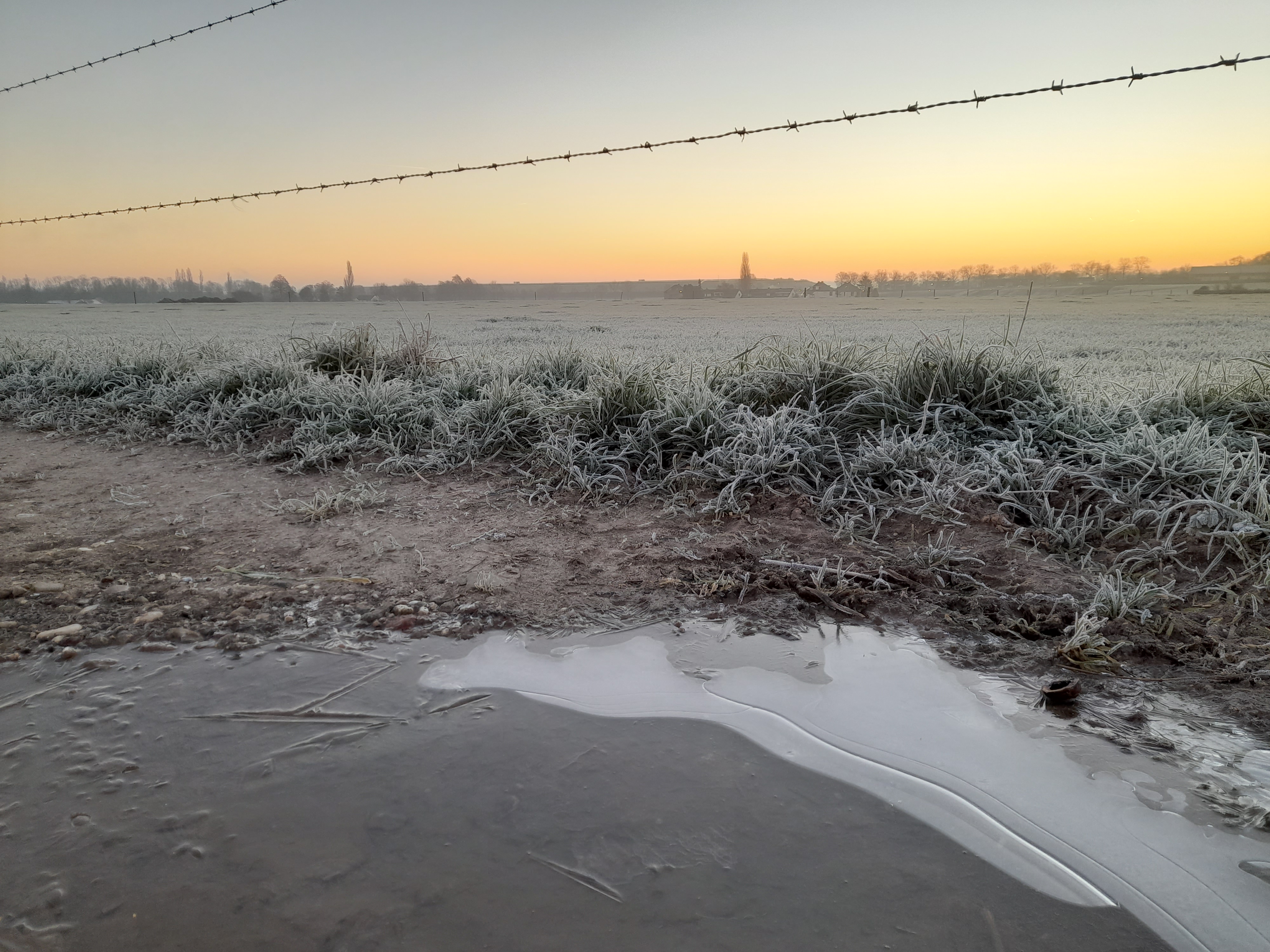 Genieten van:Â herfstkleuren. Het geel, rood en bruin aan de bomen. De mist die langzaam optrekt. De maan die zich nog niet bij de dag wilt neerleggen. Het zorgt voor mooie plaatjes op weg naar mijn werkplek.
